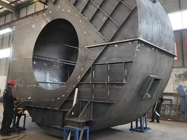 تم تجهيز ورشة العمل الثابتة الرئيسية لدينا بمجموعة كاملة من معدات معالجة وتشكيل المعادن المتقدمة، بما في ذلك آلات القطع بالليزر/البلازما CNC ذات الدقة العالية، وآلات اللف الكبيرة، وروبوتات اللحام الآلية، ومعايرات التوازن الديناميكي. ويضمن هذا الدقة والاتساق المتميزين في كل خطوة — بدءًا من التقطيع والتشكيل وحتى اللحام والتجميع — مما يضع أساسًا قويًا لاستقرار ومتانة المنتجات مثل مراوح إزالة الغبار ومراوح الضغط العالي والمنافخ الصناعية.
